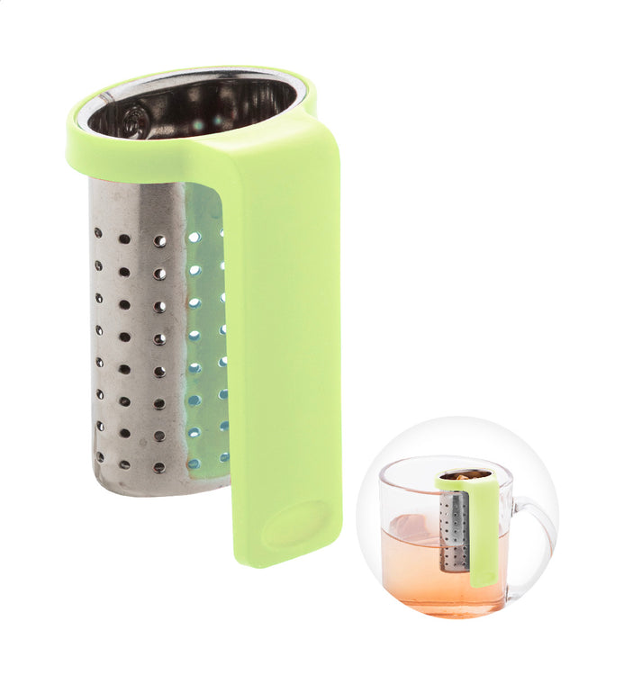 | Descriere | Infuzor de ceai, din oțel inoxidabil, cu clemă practică, din ABS reciclat. Conceput pentru a se atașa ușor la marginea unei căni. |
