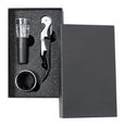 Set de vin cu tirbușon, dop de picătură și dop de vid. În cutie cadou neagră.