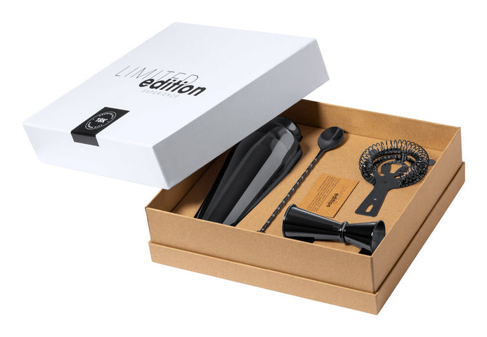 Set de cocktail, din oțel inoxidabil, cu shaker de 550 ml, jigger de măsurare (25 și 50 ml), strecurătoare de cocktail și lingură. În cutie cadou. Produs din colecția Limited Edition.