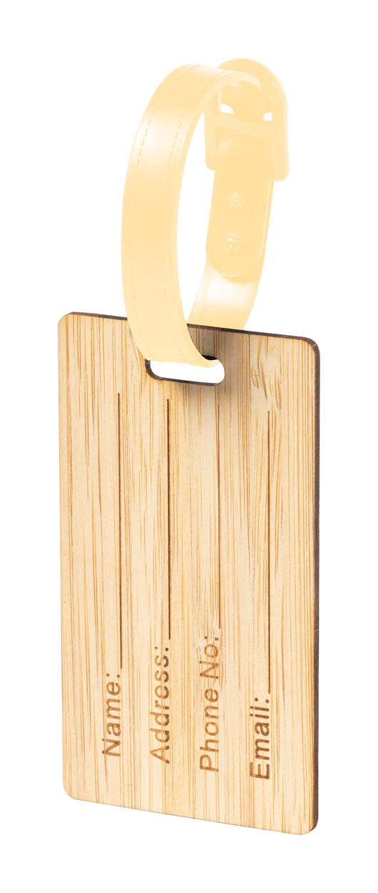 | Descriere | Etichetă pentru bagaje, din bambus, cu închidere cu cataramă. |