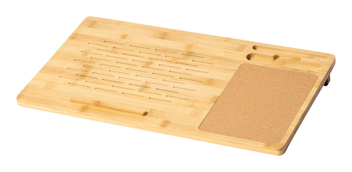 | Descriere | Birou pentru laptop, din bambus, cu suport incorporat pentru telefon mobil și tabletă și mousepad din plută naturală. |