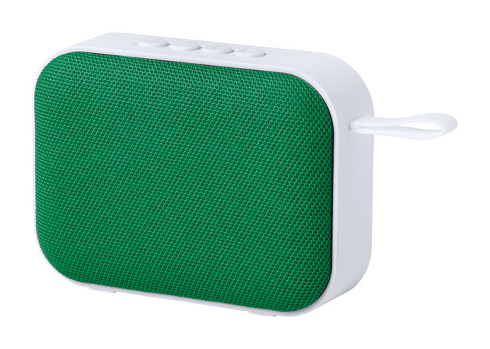 Boxă bluetooth cu funcție hands-free, radio FM, USB și micro SD player. Carcasă din plastic , pânză difuzoare din poliester și cu baterie reîncărcabilă. Se livrează cu cablu de încărcare USB.