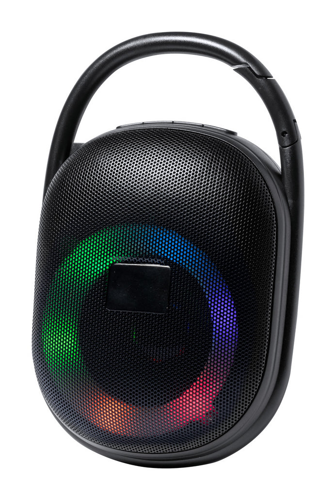 Boxă portabilă din plastic ABS, cu lumini LED multicolore și 5 moduri de lumină. Cu apeluri hands-free, radio FM și funcții de redare micro SD și baterie reîncărcabilă încorporată. Inclusiv cablu de încărcare USB.