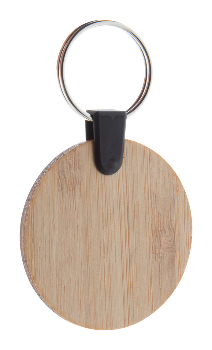 | Descriere | Breloc din placaj de bambus cu inel metalic. |