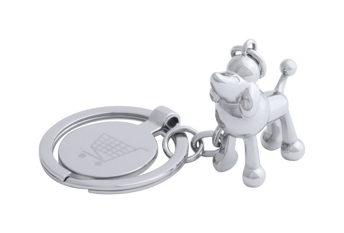 | Descriere | Breloc metalic cățeluș cu fisă. |