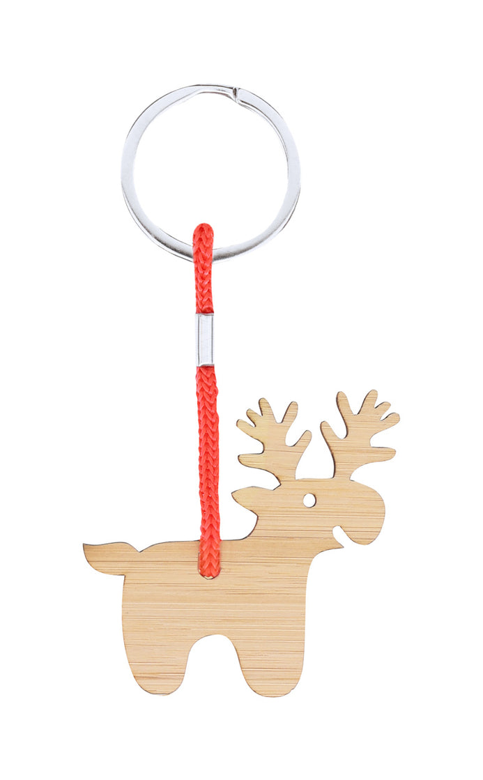 | Descriere | Breloc de Crăciun, din placaj de bambus, cu șnur roșu și inel metalic. |