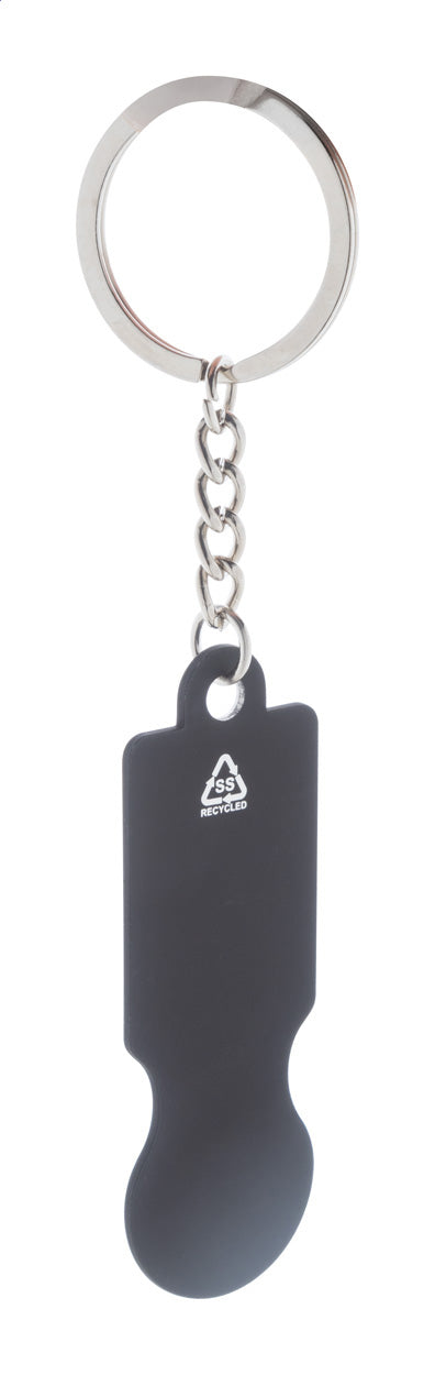 Breloc din oțel inoxidabil reciclat, cu finisaj cauciucat și monedă de cărucior pentru cumpărături. Cu acoperire specială pentru gravarea laser în oglindă.