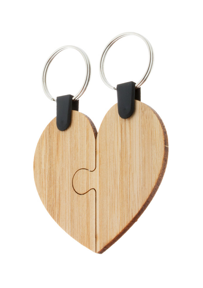 | Descriere | Brelocuri puzzle duble în formă de inimă, din placaj de bambus, cu inele metalice. |