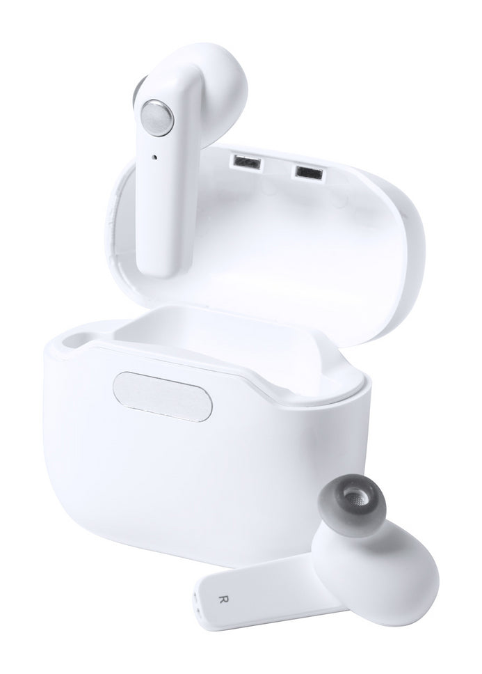 Căști fără fir bluetooth în carcasă cu încărcare si sterilizator UV din plastic, cu căști ergonomice și funcție de apelare mâini libere. Inclusiv cablu încărcător USB.