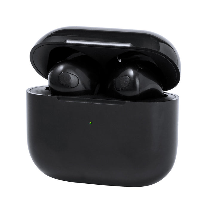 Căști bluetooth fără fir, cu funcție de apel hands-free, în carcasă din plastic pentru încărcător. Inclusiv cablu de încărcare USB.
