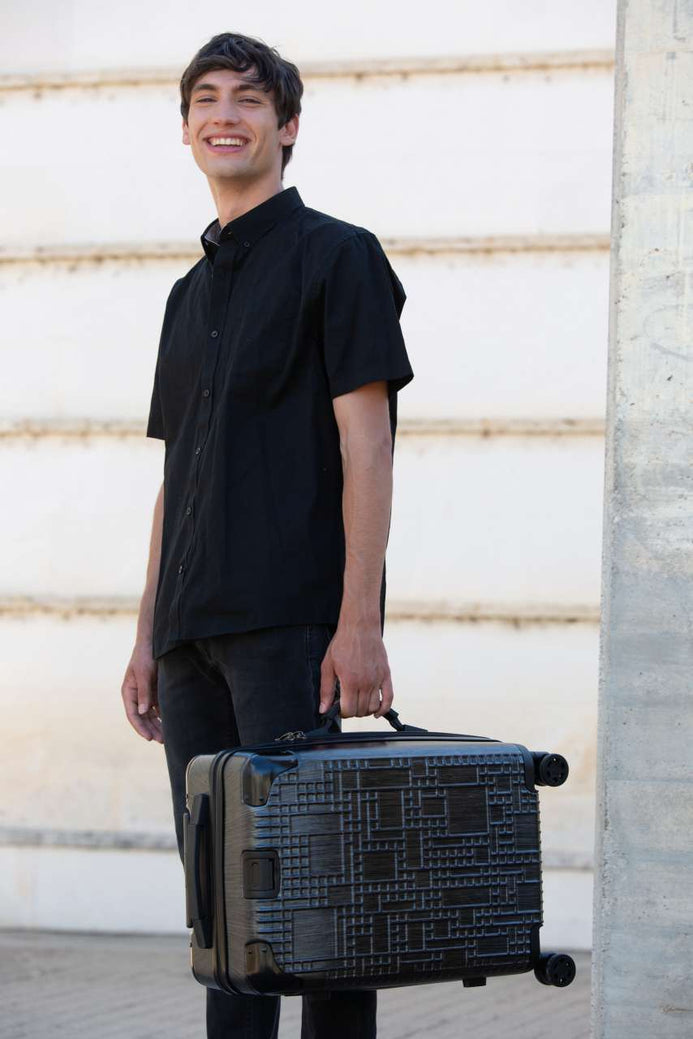 - Cu un design original cu munții Aneto din Pirinei, această valiză din aluminiu are 4 roți multidirecționale și tălpi laterale de protecție pentru așezare pe laterală