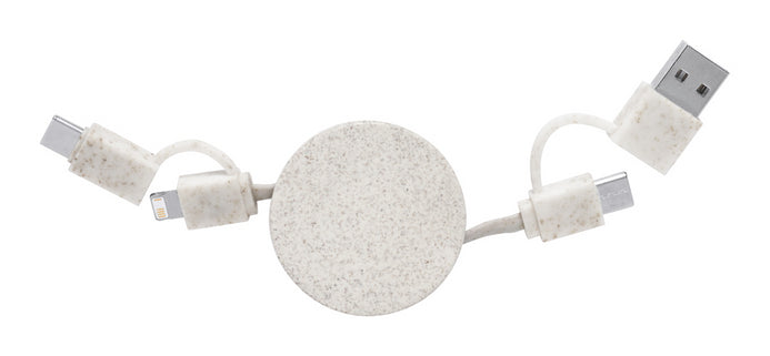 | Descriere | Cablu încărcător USB telescopic din plastic ecologic din paie de grâu. Cu conectori micro USB, USB-C și Lightning. Cu intrări USB și USB-C. |