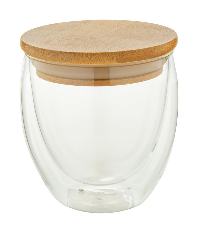 | Descriere | Cană termică din sticlă borosilicată cu perete dublu, cu capac din bambus, 250 ml. În cutie de hârtie kraft. |