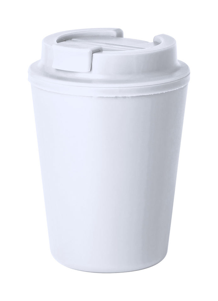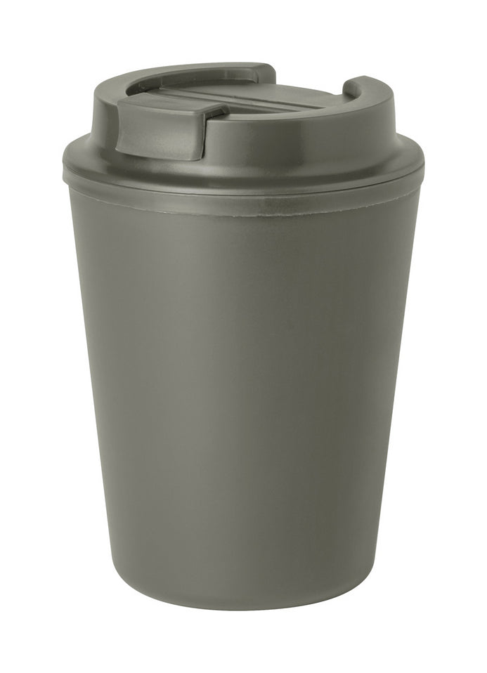 Descriere Cană termică, din plastic PP reciclat, cu perete dublu, cu capac de băut, 300 ml.