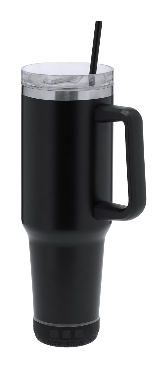 | Descriere | Cană termoizolată din oțel inoxidabil, cu perete dublu, cu capac de băut, pai și difuzor bluetooth cu lumini LED multicolore, funcție de apel hands-free și baterie reîncărcabilă încorporată. 1250 ml. |