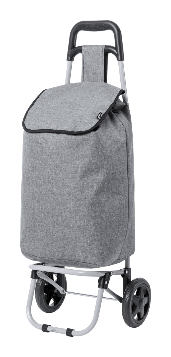 Cărucior de cumpărături pliabil RPET cu cadru metalic, buzunar cu fermoar pe spate, roți și mâner întărite. Cu etichetă distinctivă RPET. Poliester 600D RPET.