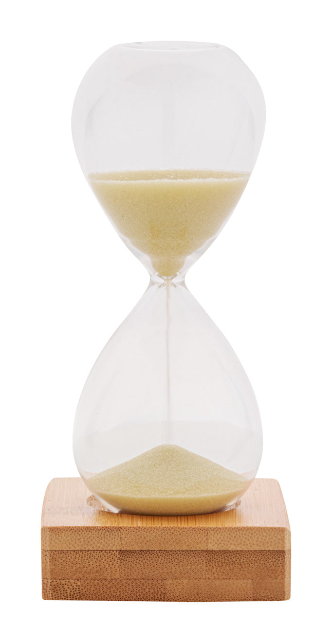 | Descriere | Clepsidră de 5 minute, din sticlă borosilicată, cu nisip, cu bază de bambus. În cutie de hârtie kraft. |