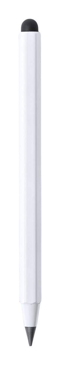 | Descriere | Pix fără cerneală, de lungă durată, din aluminiu reciclat, cu capăt tactil și vârf din aliaj metalic, care oxidează hârtia. Cu corp hexagonal, inclusiv rigle de 11 cm și 4 inchi. Acest stilou scrie în mod similar cu un creion și poate fi, de asemenea, șters. |