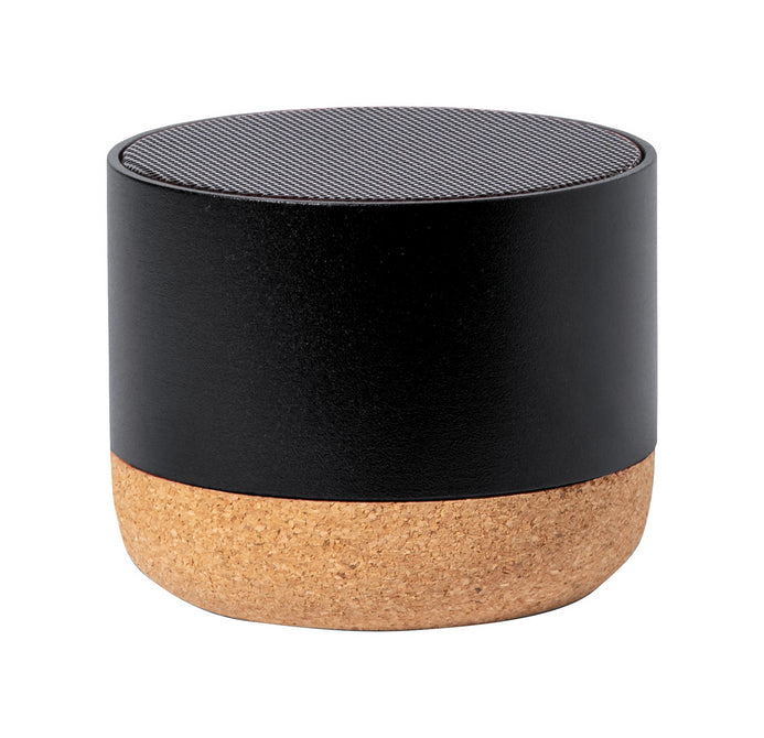 Difuzor bluetooth din aluminiu reciclat, cu bază din plută naturală și baterie reîncărcabilă încorporată (300 mAh). Inclusiv cablu de încărcare USB.