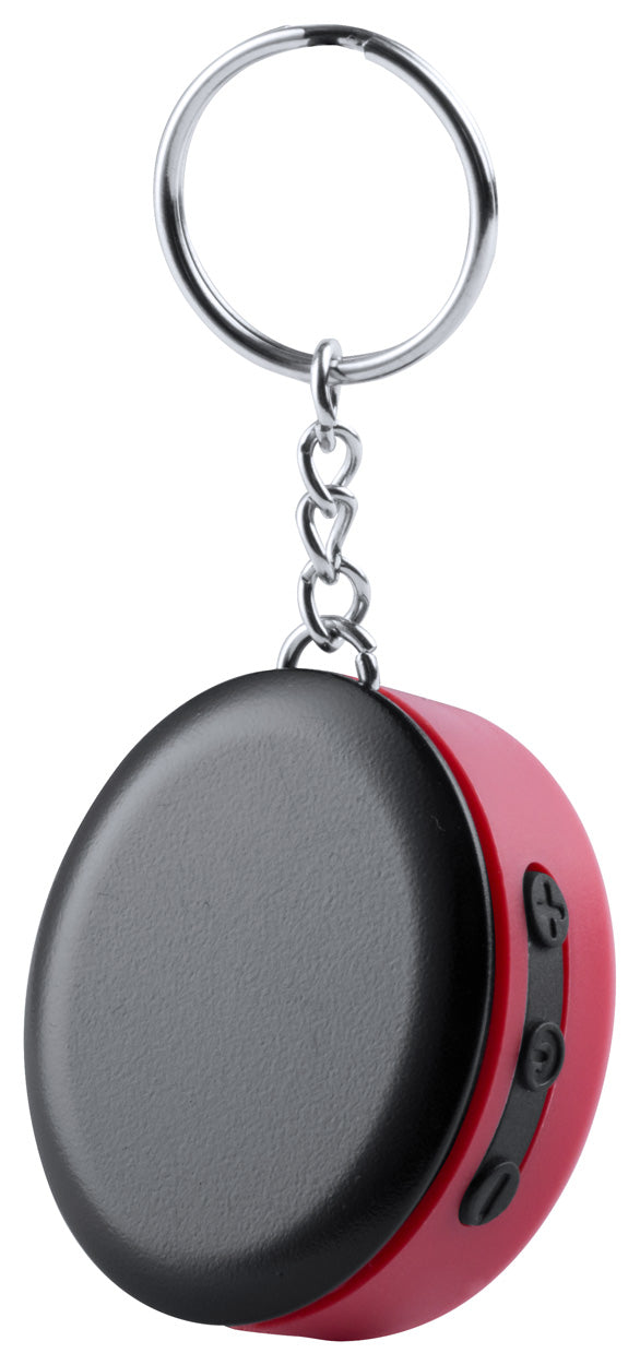 Difuzorcu bluetooth, cu inel metalic pentru chei, carcasă din plastic, acumulator încorporat, 1 LED în interiorul carcasei pentru gravură iluminată. Cu hands-free. Cablu încărcător USB inclus.