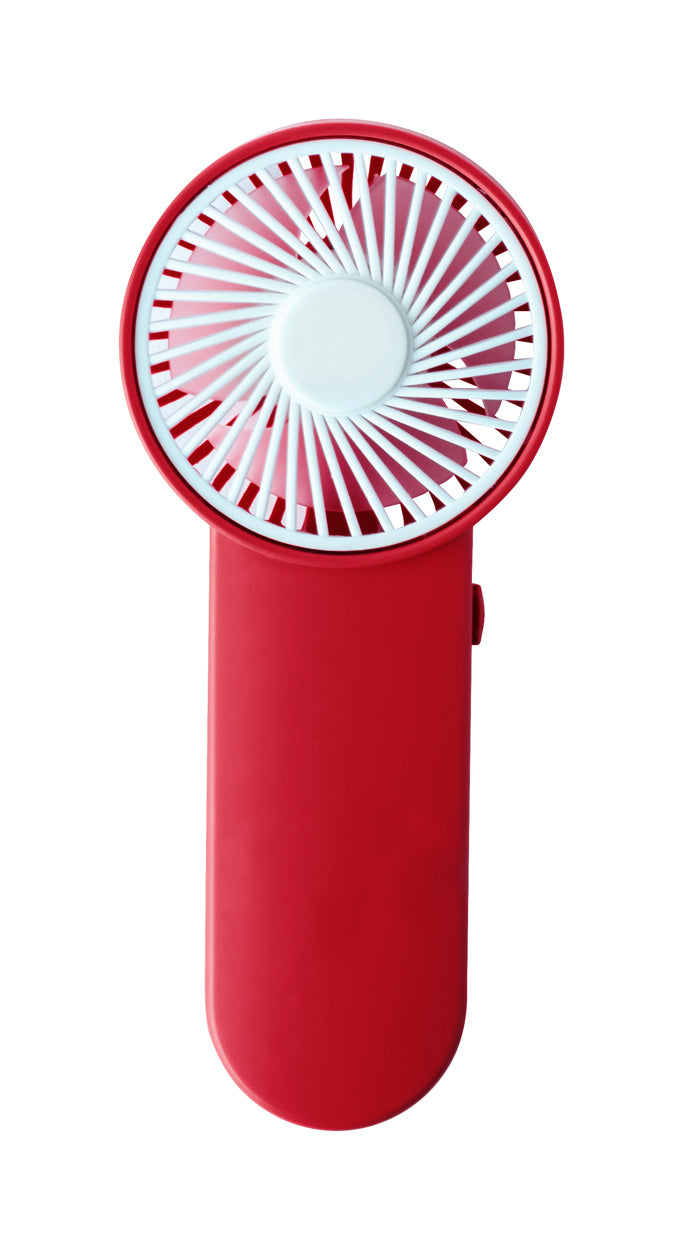 Electric hand fan in ABS plastic. Operates with 2 AA batteries, without battery.