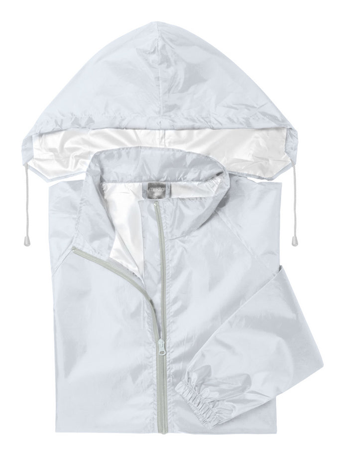 | Descriere | Geacă de ploaie cu fermoar și glugă, poliester 210T. |