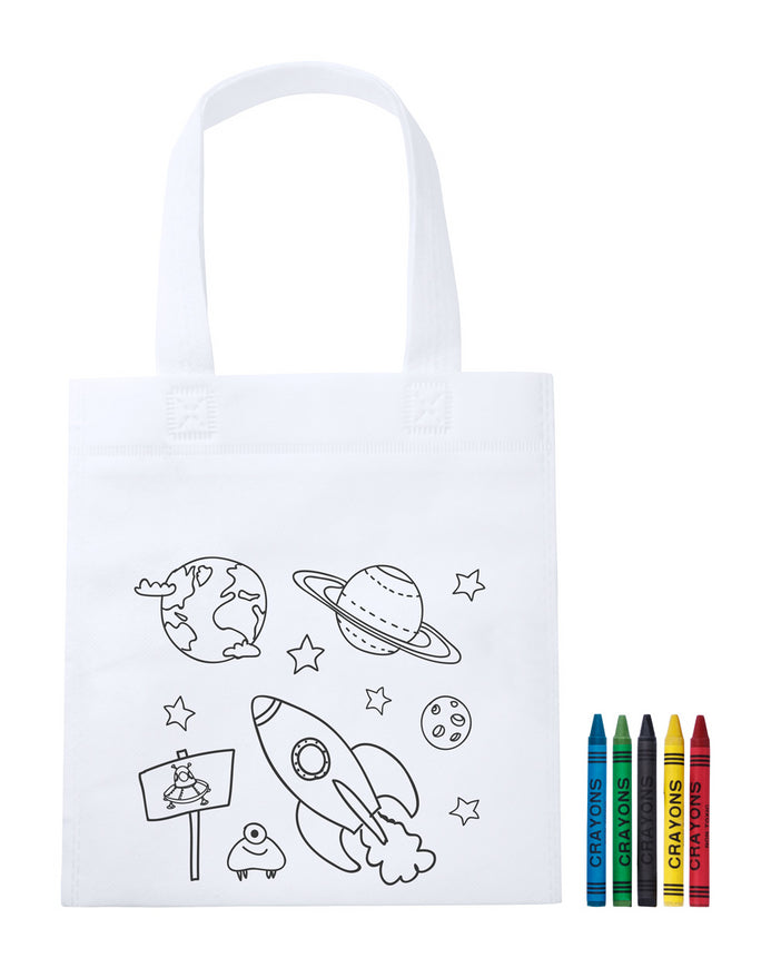 | Descriere | Geantă de cumpărături din material nețesut, cu 5 creioane colorate cerate. |