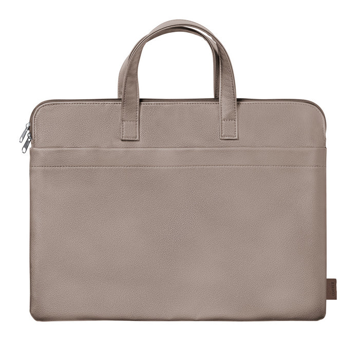 Geantă pentru documente, din piele reciclată, cu compartimente căptușite, cu fermoar și mânere întărite. Cu etichetă distinctivă din piele reciclată.