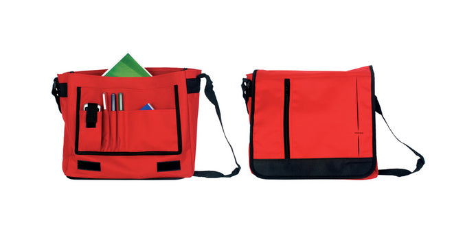 | Descriere | Geanta umeri cu buzunare separate pentru pixuri, mobil si permis. Material: 600D poliester. |