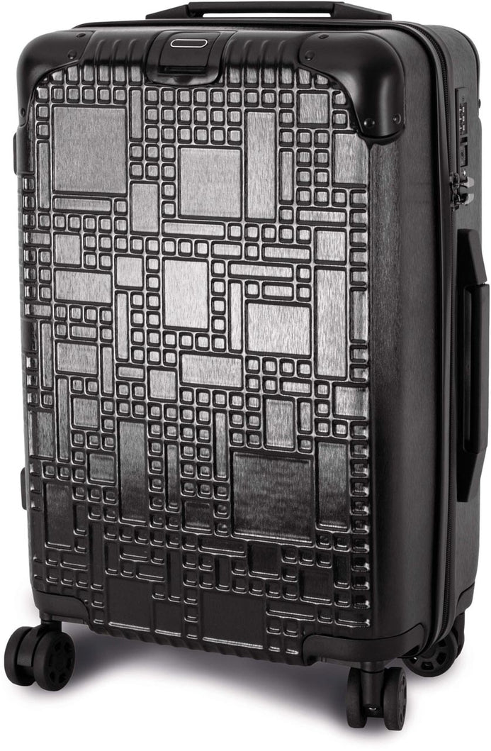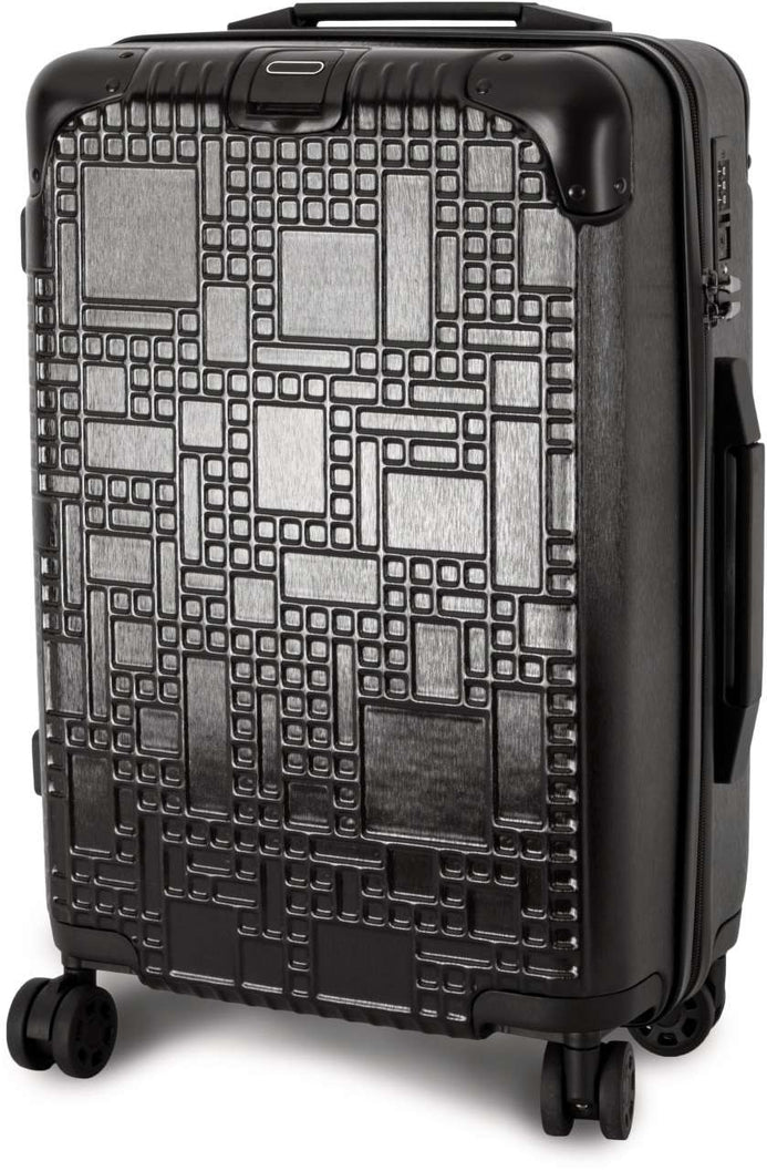 - Cu un design geometric „Geoline“, această valiză din aluminiu are 4 roți multidirecționale și tălpi de protecție laterală pentru așezare pe laterală