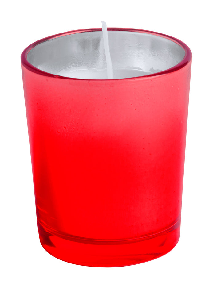 Lumânarea parfumată în suport de sticlă. În cutia de hârtie albă.