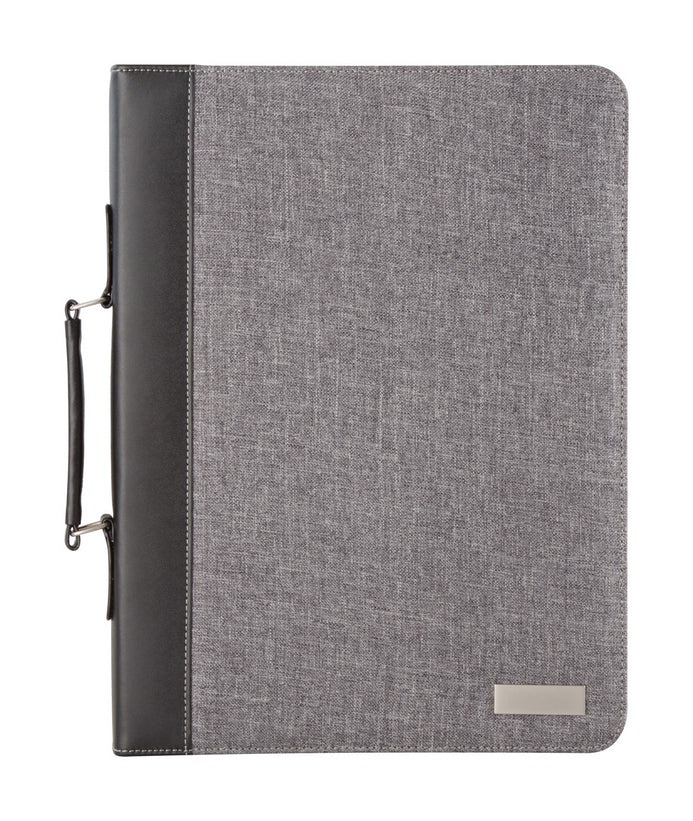 | Descriere | Mapă A4 din pânză și înlocuitor piele, cu fermoar și mâner, blocnotes cu 20 file dictando, calculator cu baterie solară, cu plăcuță metalică. |