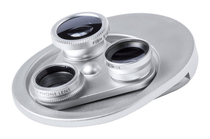 | Descriere | Obiectiv universal pentru smartphone cu 3 lentile rotative. 4 funcții: fish-eye, macro, unghi larg, polarizare circulară. |