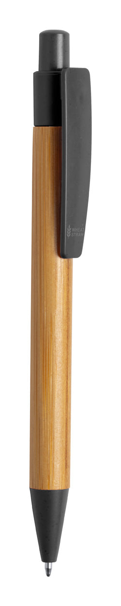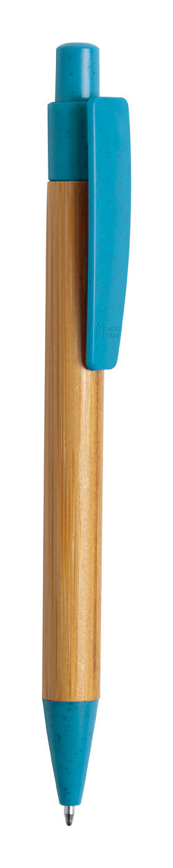 | Descriere | Pix din bambus cu clips și buton din plastic ecologic din paie de grâu . Mină albastră. |