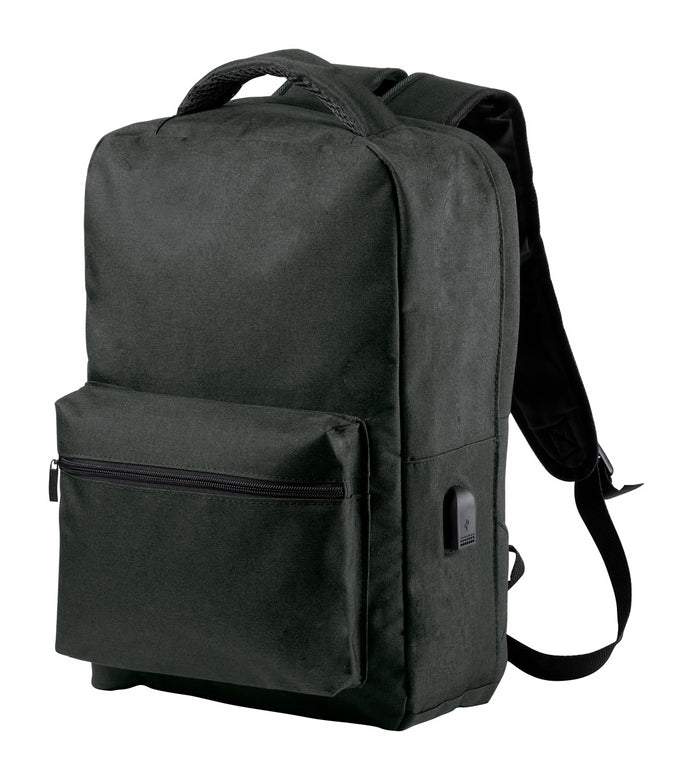 Rucsac antifurt cu RFID, mai multe compartimente cu fermoar, compartimente căptușite pentru laptop și tabletă, cu spate și bretele întărite . Port USB încorporat pentru power bank. Poliester 300D.