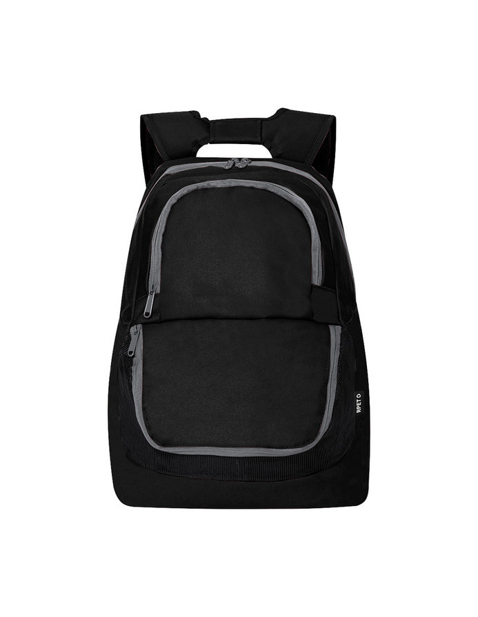 Rucsac RPET, cu buzunare principale și frontale cu fermoar, compartiment pentru pantofi, din plasă, mâner căptușit, bretele pentru spate și umăr. Poliester 600D RPET cu etichetă distinctivă RPET.