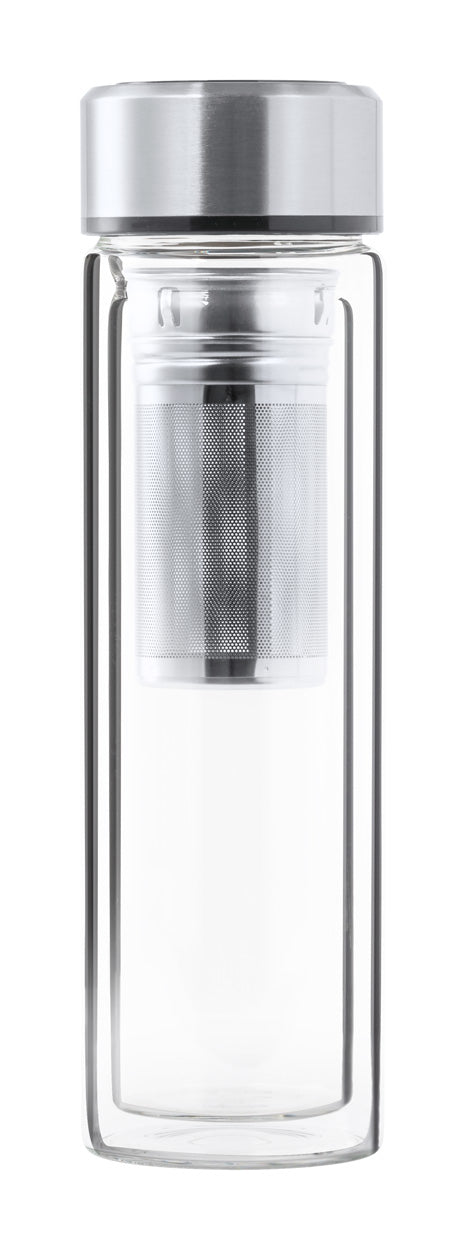 | Descriere | Sticlă termo, din sticlă borosilicată, cu perete dublu, cu infuzor de ceai și capac din oțel inoxidabil cu afișaj termometru tactil. 390 ml. Cu baterie tip buton. Nu este potrivit pentru băuturi carbogazoase. |