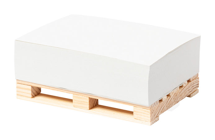 | Descriere | Suport hârtie, sub formă de mini palet, din lemn, cu bloc de note cu 300 de coli, din hârtie reciclată. |