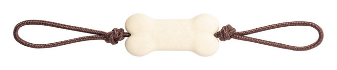 Jucărie pentru câini în formă de os din TPR, cu curea din poliester.