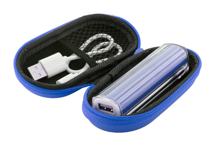 Baterie externă cu cablu USB, 2200 mAh. În suport cu fermoar.