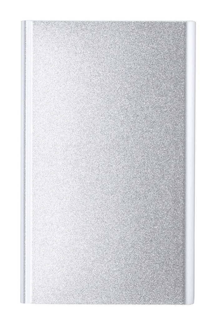 Aluminium USB power bank with 4000 mAh battery. With 2 USB and 2 USB-C charger ports. USB-C input port. Including USB charger cable.