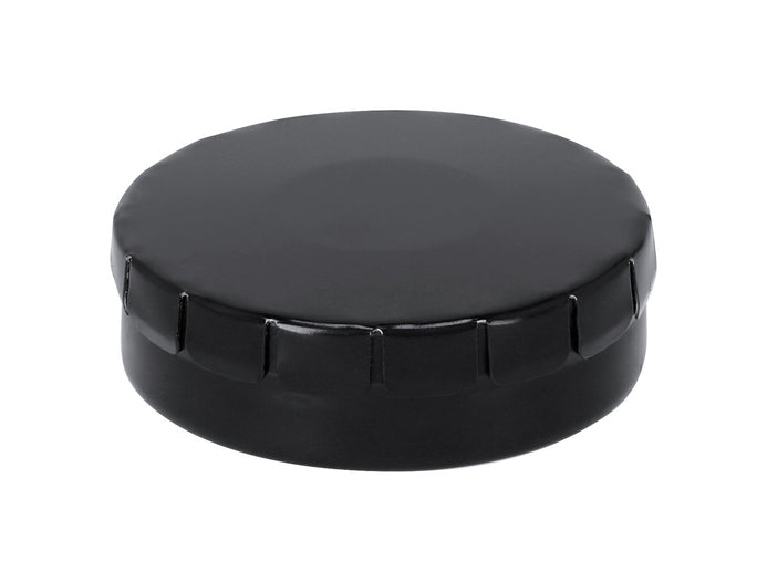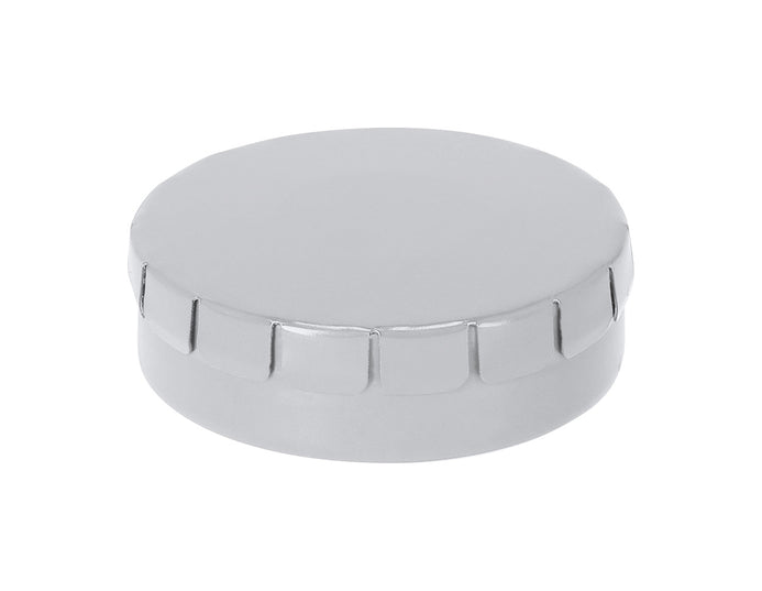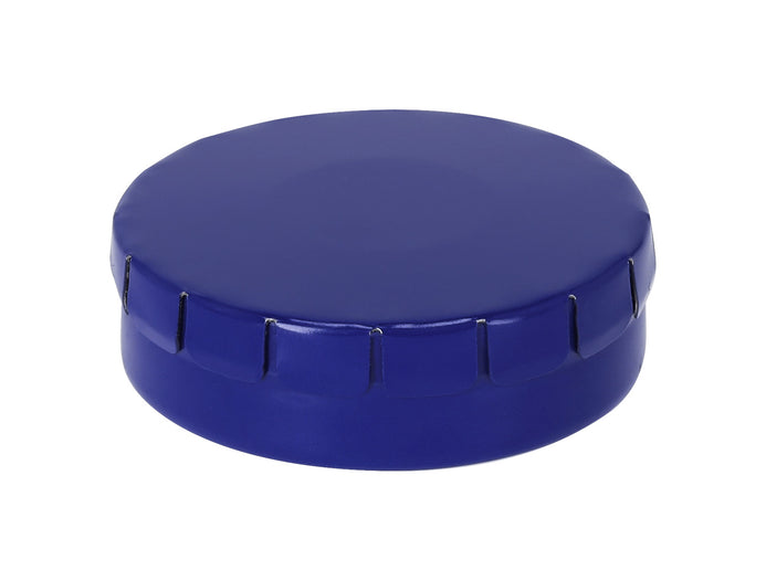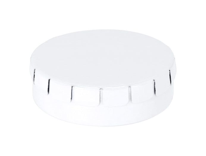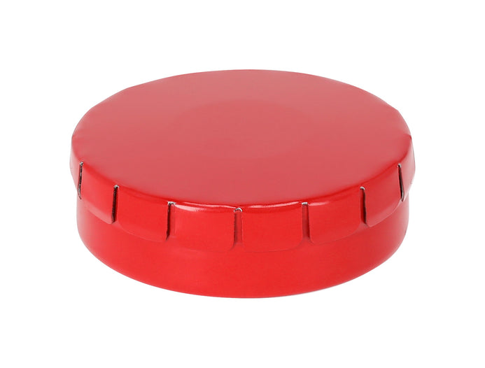 Cutie de bomboane cu mentă, rotundă, metalică, cu cca. 12 gr bomboane fără zahăr. Poate fi deschis prin apăsarea capacului.