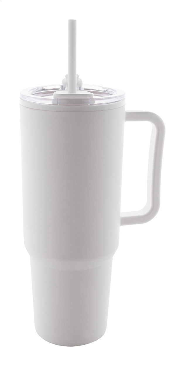 | Descriere | Cană termoizolată din plastic PP, cu perete dublu, cu capac de băut și pai. 1100 ml. |