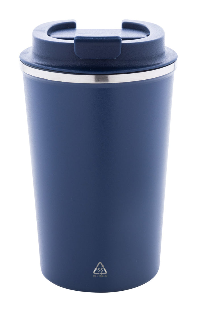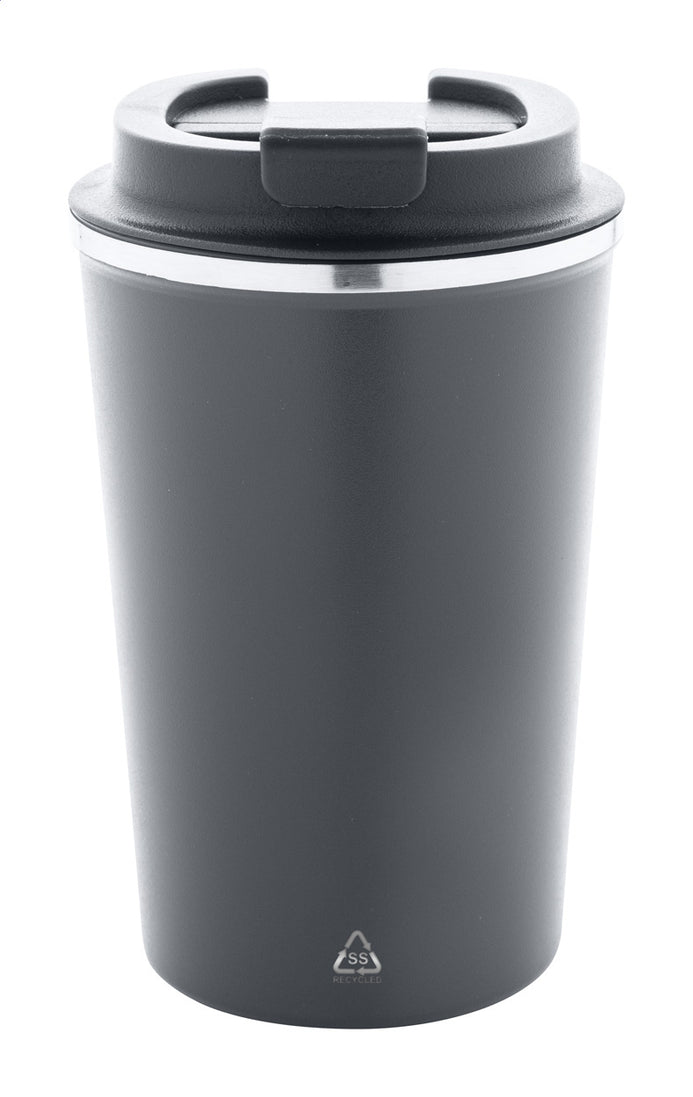 Descriere Pahar termoizolant, din oțel inoxidabil reciclat, cu perete dublu, cu capac de băut din PP. 350 ml.