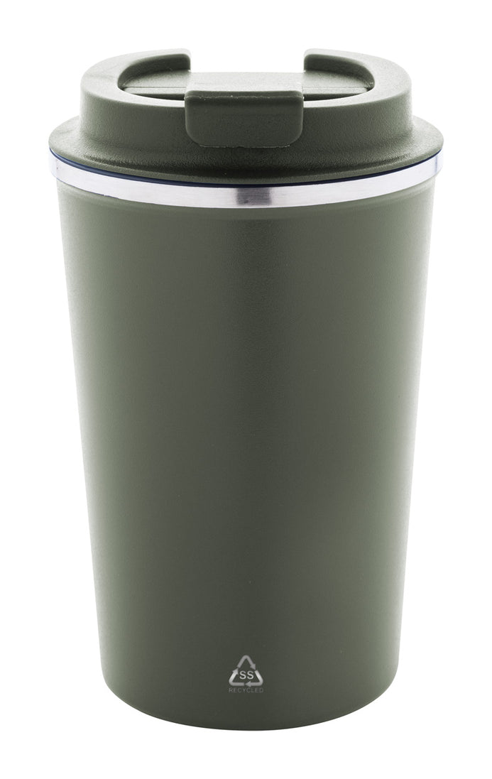 Pahar termoizolant, din oțel inoxidabil reciclat, cu perete dublu, cu capac de băut din PP. 350 ml.