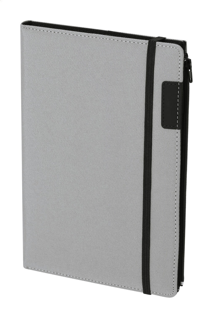 | Descriere | Agendă cu copertă din poliester 600D RPET, cu buzunar cu fermoar, bandă de cauciuc și 100 de coli dictando. Dimensiune A5. |