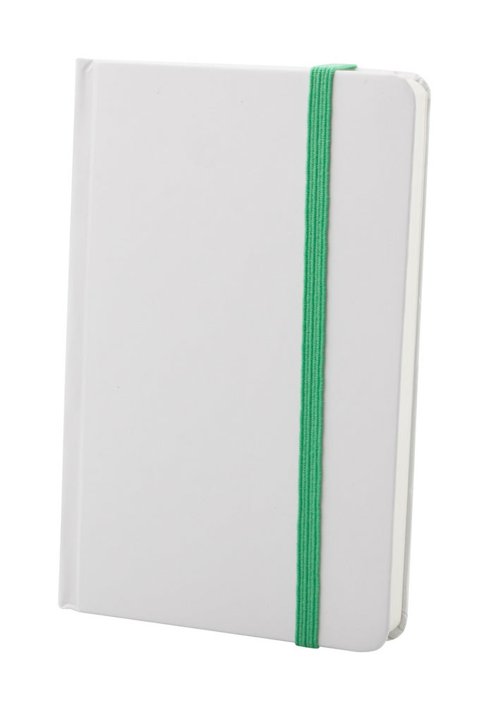 | Descriere | Blocnotes cu copetă din carton alb, cu 80 file veline, curea cauciucată. |