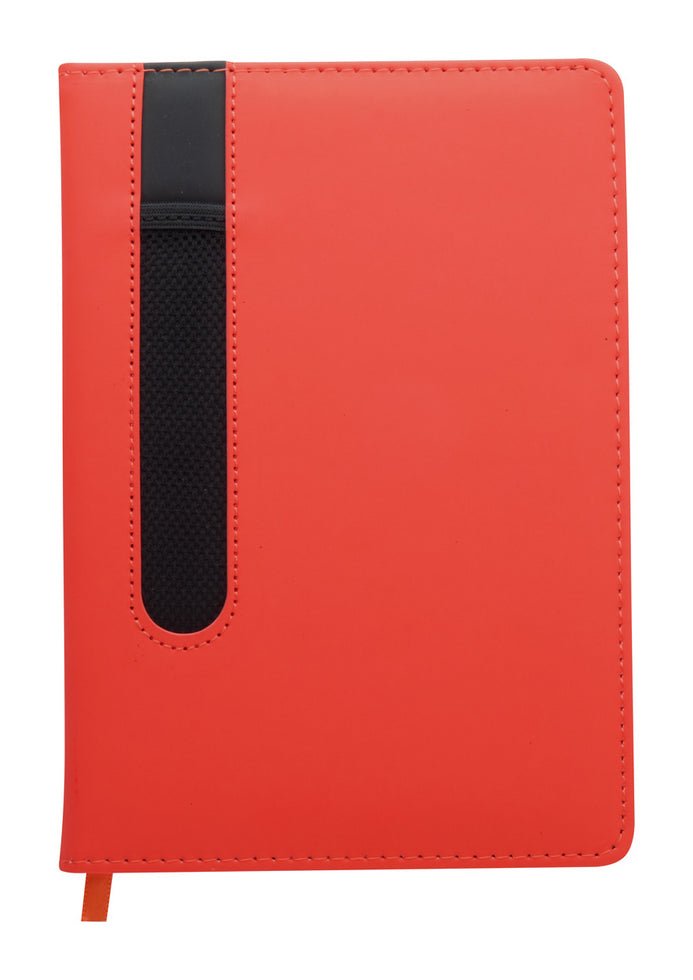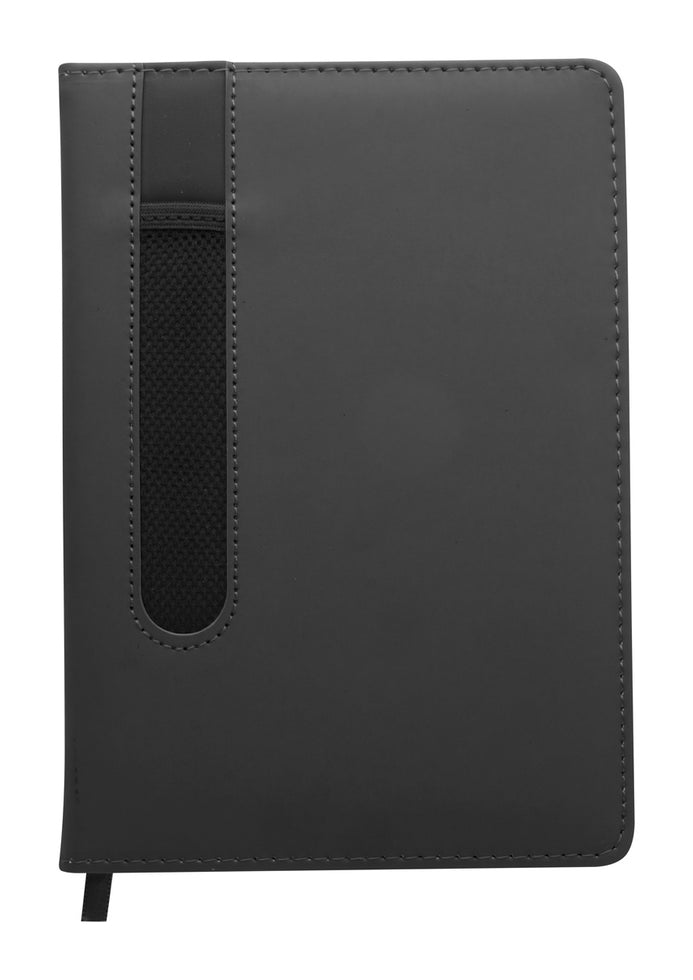 | Descriere | Blocnotes cu copertă din înlocuitor piele, 80 file veline, cu suport pentru pix. |