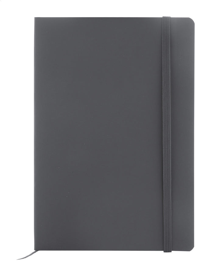 Caiet cu coperta din piele PU reciclată, moale, cu 80 de foi dictando, din hârtie reciclată. Cu semn de carte de culoare asortată și bandă de cauciuc. Dimensiune A5.