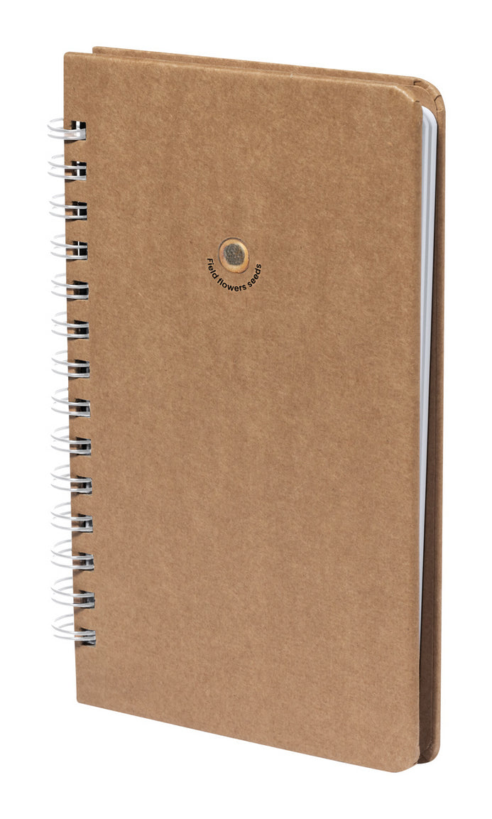 | Descriere | Recycled cardboard covered spiral notebook with 80 lined sheets in recycled paper. Including plantable wildflower seeds. |
